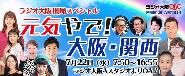 本日はラジオ大阪開局スペシャル「元気やで!大阪 関西」に出演いたしたします。